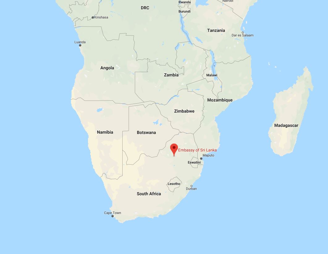 High Commission of Sri Lanka in Pretoria South Africa, Mozambique, Namibia, Zambia, Zimbabwe, Lesotho, Malawi, Angola, Botswana and Eswatini.