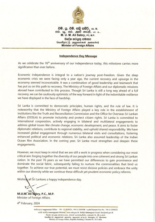As we commemorated the 75th year of our nation's independence, we encountered the indignity of being labeled a financially bankrupt country. Upon the advent of the 76 th Independence Day, we have effectively navigated through many challenges, steering the economy toward stability with the support of the global community.