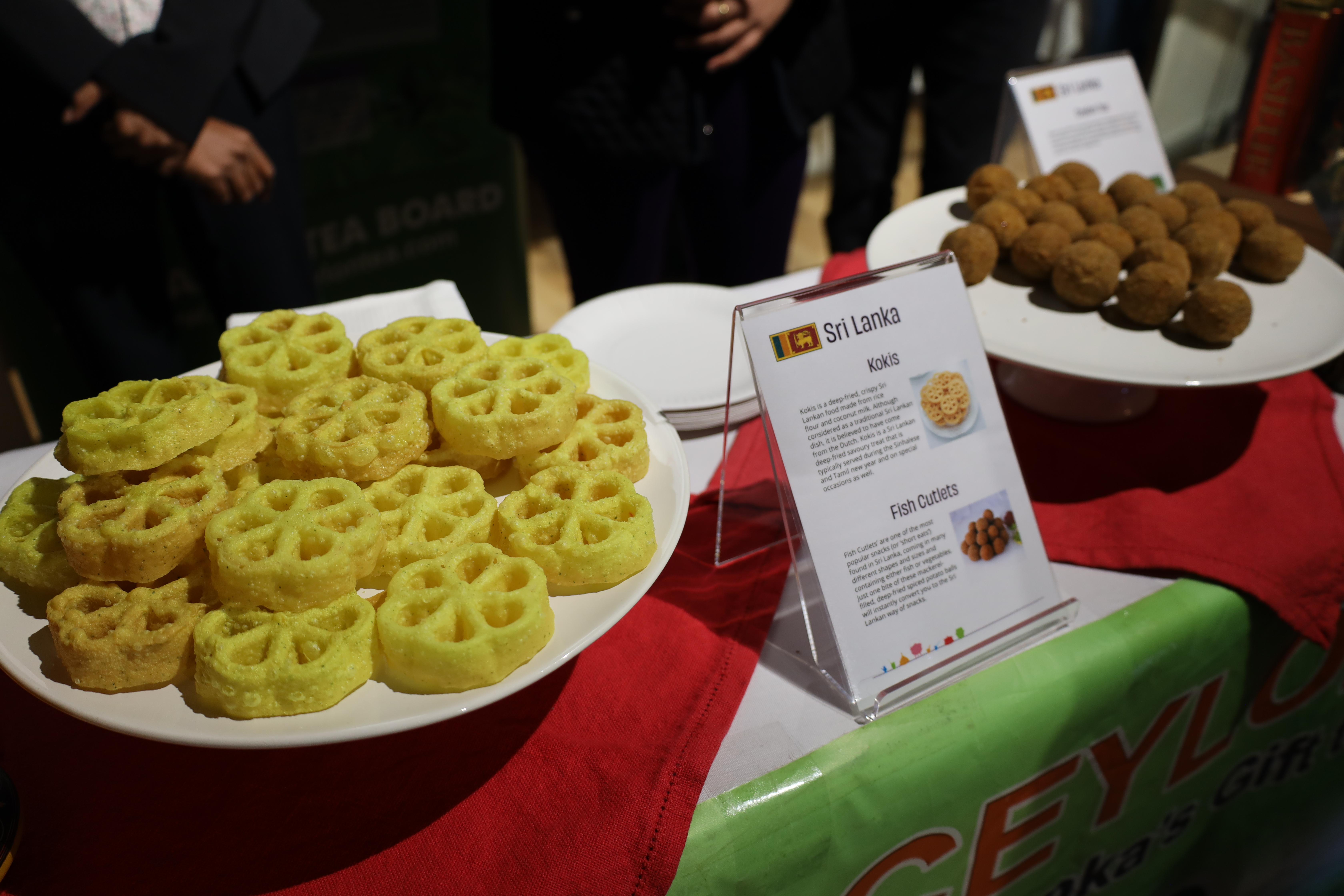 The Sri Lanka booth displayed Ceylon Tea in attractive export quality packaging together with information on varieties of Ceylon tea, world class quality of Sri Lanka tea, preparing tea, and health benefits of drinking tea. Also served were traditional delicacies like Kokis and Cutlets and hot Ceylon tea. During the cooking demonstration which attracted many visitors, High Commission staff demonstrated how to prepare Kiribath & Sinisambal with simple ingredients. Sri Lanka also exhibited photos of other Sri Lankan foods in an exhibition of international foods.