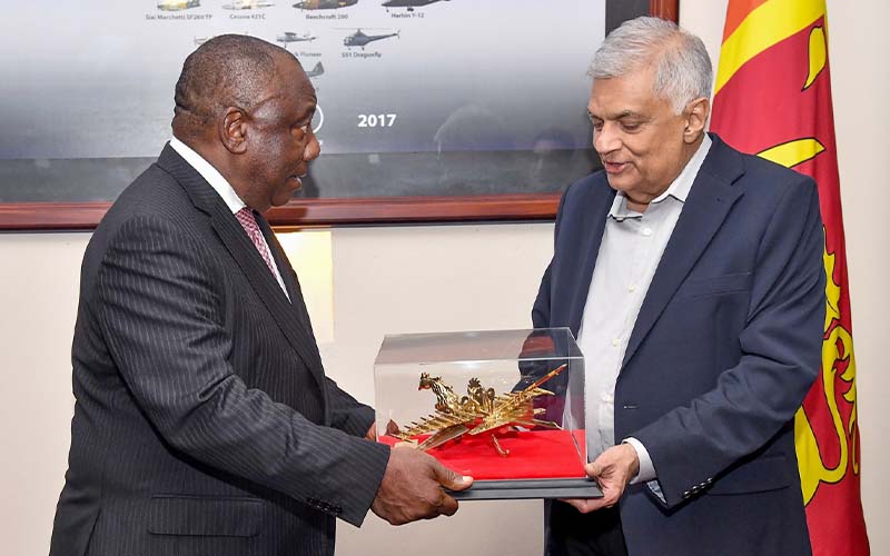 South African President Cyril Ramaphosa arrived in Sri Lanka for a short visit yesterday (16) after attending the G20 Summit. He met with President Ranil Wickremesinghe at the Katunayake Air Force base for discussions on bilateral issues.