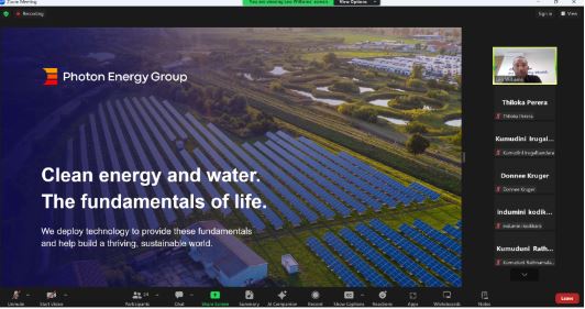 The Sri Lanka High Commission in Pretoria, South Africa, in collaboration with the Sri Lanka Export Development Board (EDB) and the Gauteng Office of Trade and Investment Kwazulu-Natal, organized an informative webinar on "Available Renewable Energy Projects in Kwazulu-Natal" for Sri Lankan renewable energy companies on March 26, 2024.