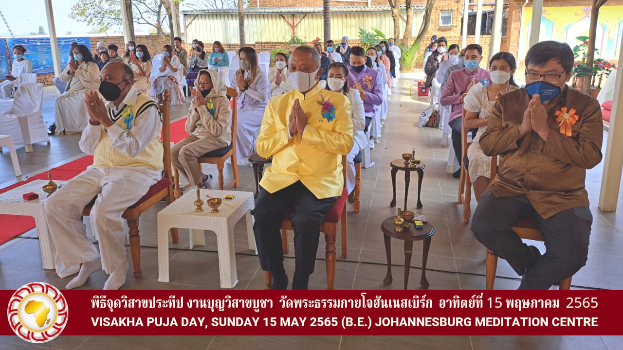 The staff of the Sri Lanka Mission in Pretoria, South Africa together with Sri Lankans in Johannesburg area participated in the 2022 Vesak celebrations, by special invitation of the Thai Buddhist Temple - Johannesburg Meditation Center (JMC) in Midrand, South Africa., on May 15, 2022. The theme of the event was religious harmony among multiple faiths. They commemorated the birth, enlighten and the passing away of Lord Buddha who taught the vision of internal reconciliation of human.